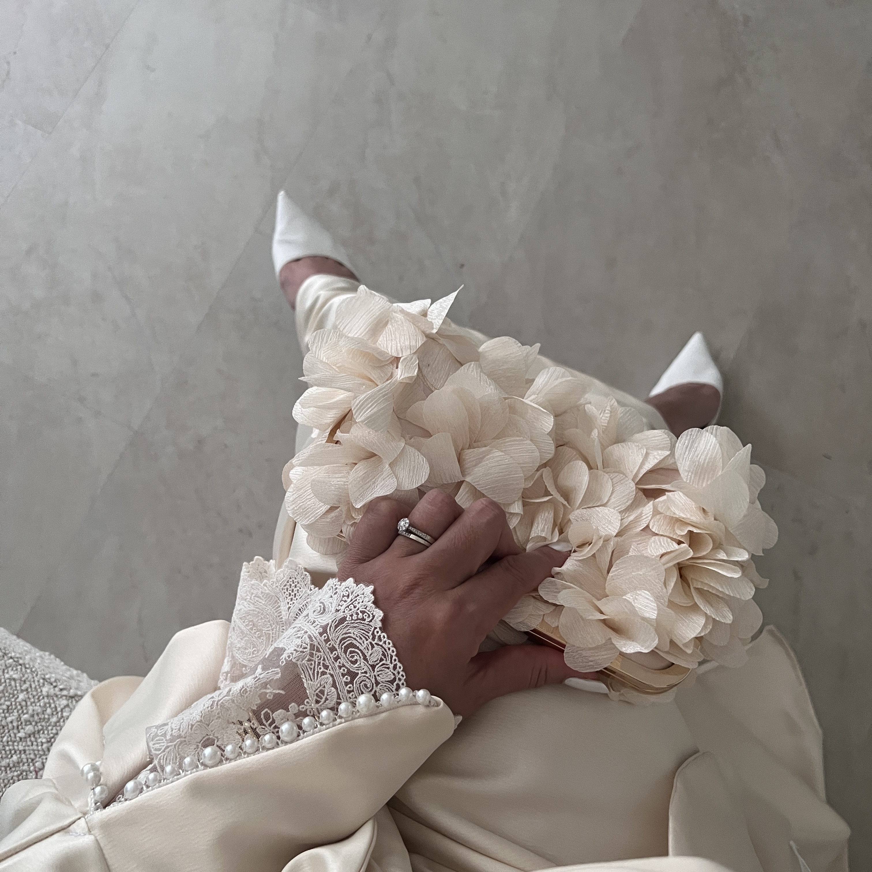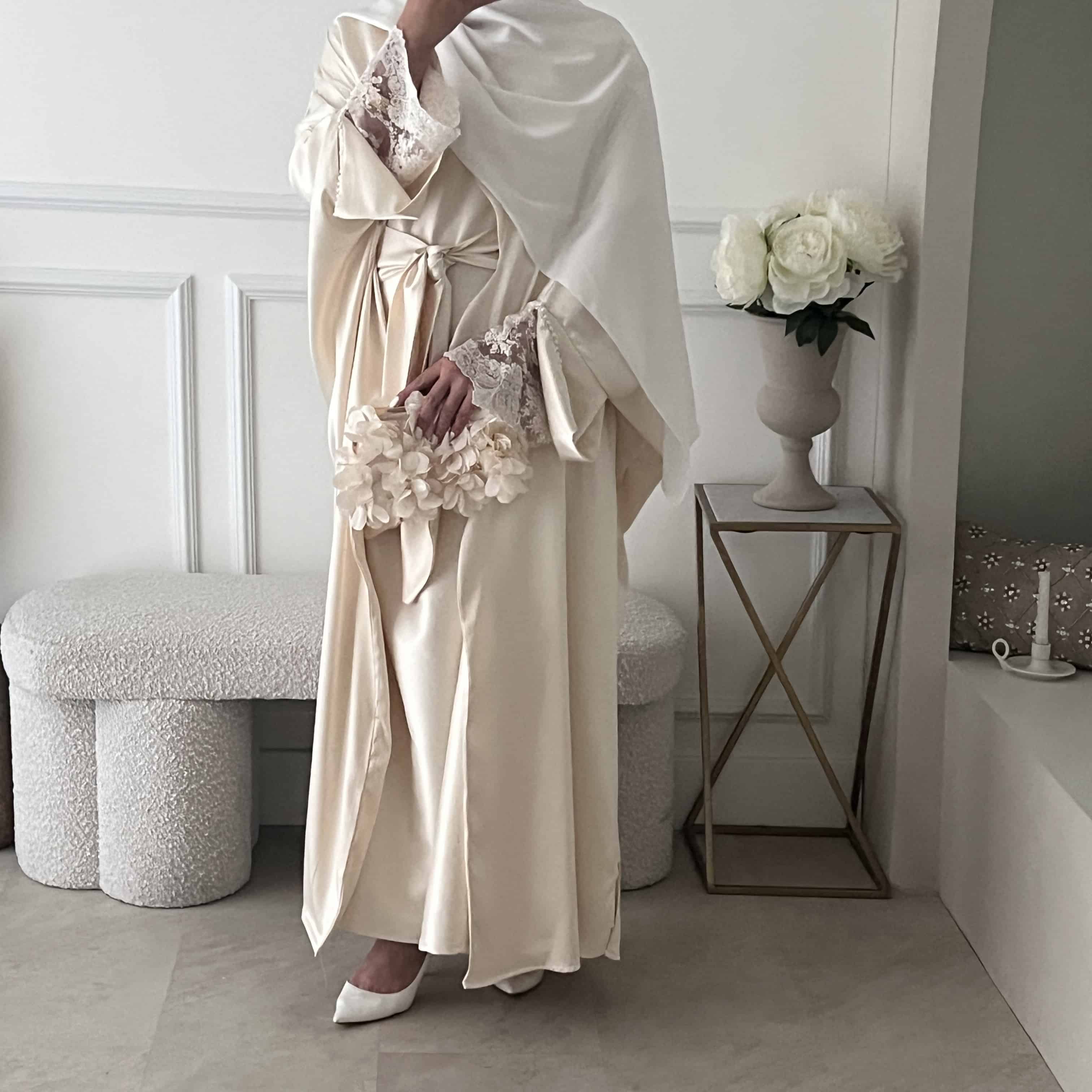Kimono Faraasha Beige Nacré Dentelle Perlé